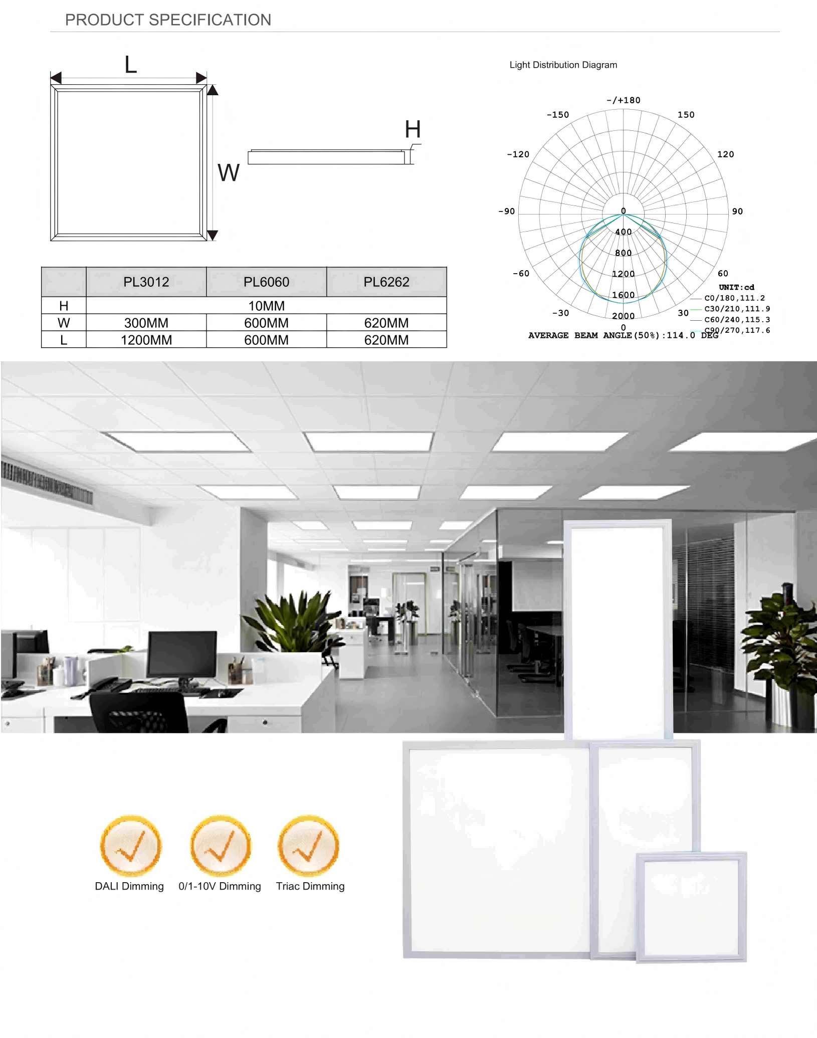 | 10 | CLEO-301236-4K UGR | LED PANEL | Lifud | 295*1195 | 25W | 4000K | 150LM/W | ¨Size: 295×1195×10mm ¨Power Factor: PF>0.9 ¨CRI: Ra>80 ¨Material: PMMA ¨UGR<19 ¨Driver: Flicker Free, AC200-240V ¨Warranty: 5 years warranty ¨Certification: CE ROHS |